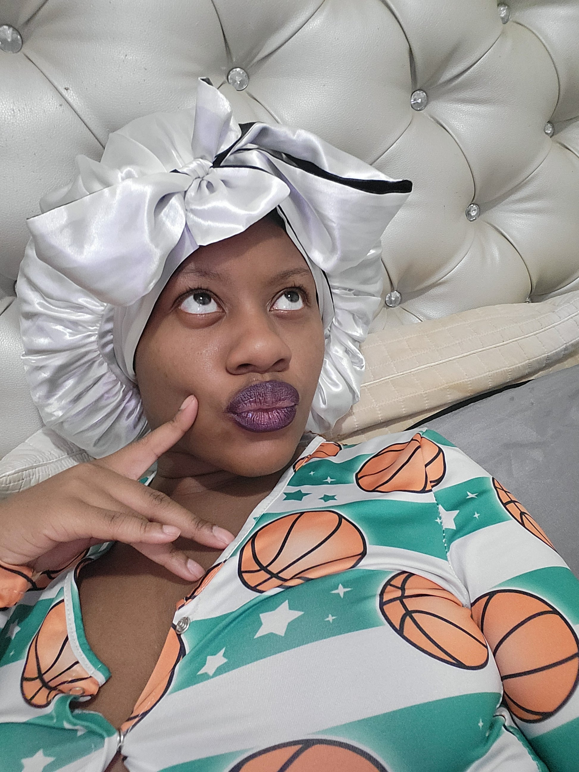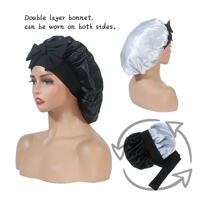 "Transform your sleepwear style with our versatile and stylish Double layer fashion Bonnet! Featuring a reversible design and adjustable tie for a perfect fit with an elastic band, this bonnet offers both practicality and fashion-forward flair. Elevate your nighttime routine and awaken feeling fabulous with our Slay 💎 bonnet."