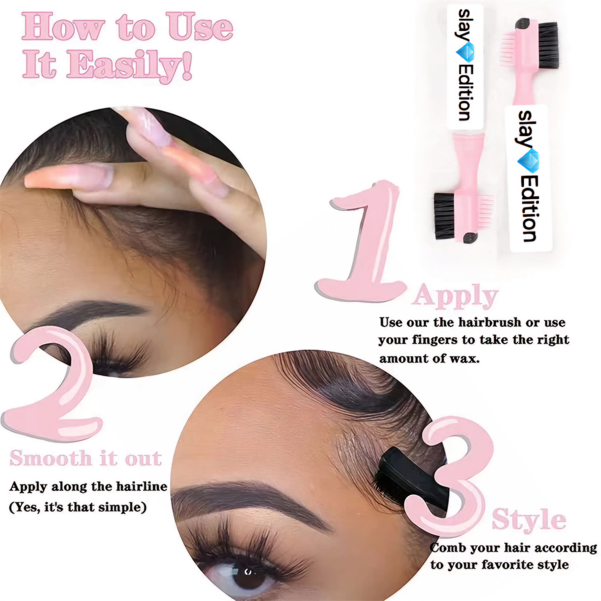 Get the perfect look with Slick n go - the ultimate hair styling tool! This high-quality baby lace wig styling brush comes in a fun pink color and is waterproof for easy, on-the-go styling. Use it as a brush, edge control gel, or both for a flawless, extra hold finish. Look your best without the fuss!l